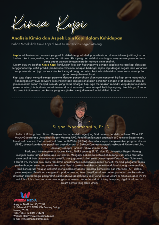 Kopi adalah minuman universal yang selalu dekat dengan kehidupan sehari-hari dan sudah menjadi bagian dan budaya. Kopi mengandung aroma dan cita rasa khas yang berasal dari kandungan senyawa-senyawa tertentu, yang dapat diamati dengan metode-metode kimia analitik.