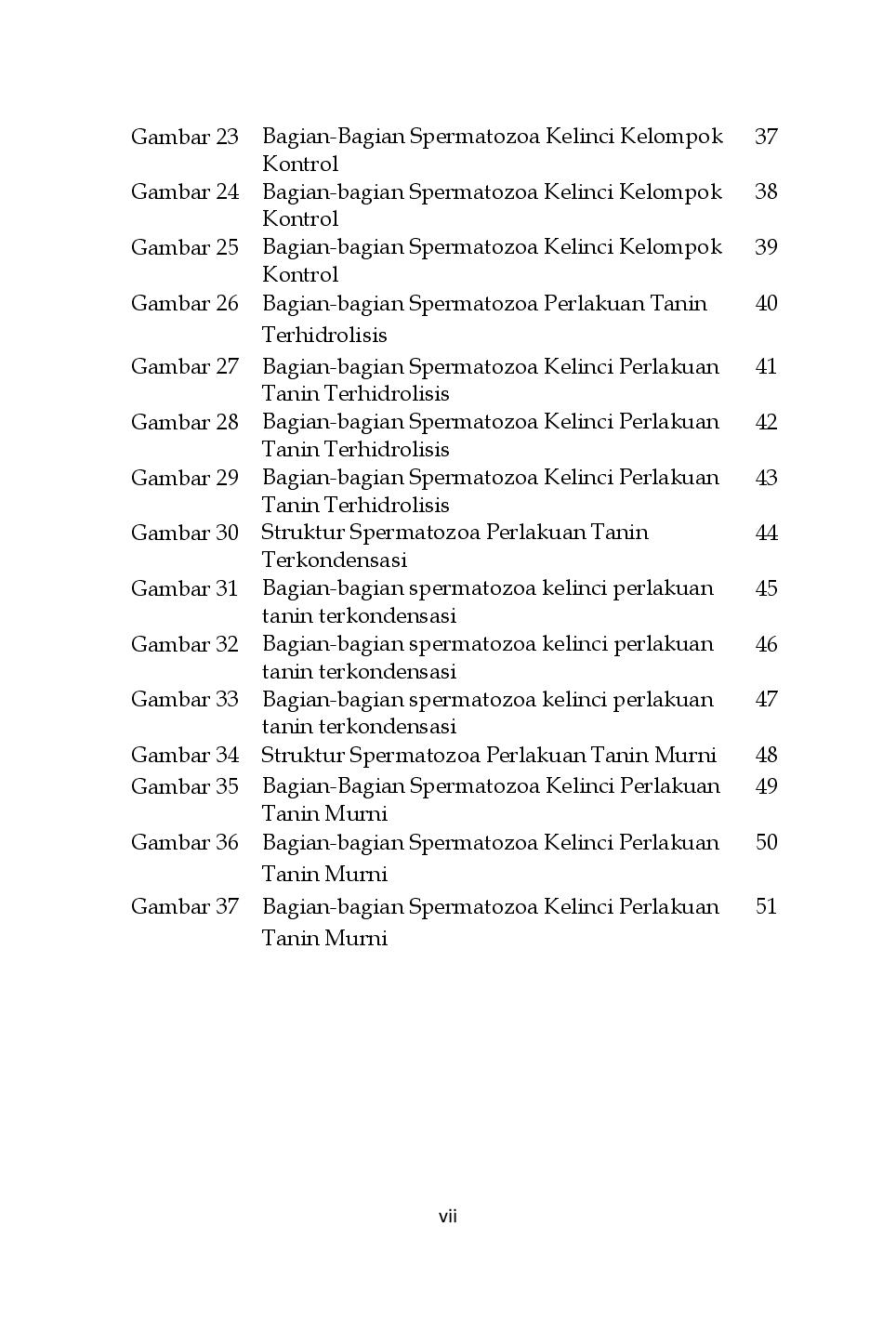 Monograf ini secara ringkas membahas tentang gambaran testis dan spermatozoa kelinci setelah diberikan perlakuan ekstrak tanin daun beluntas. Monograf ini secara terperinci berisi tentang: 1) pendahuluan yang membahas latar belakang, permasalahan, dan tujuan penelitian, 2) Tinjauan tentang daun beluntas dan kelinci yang membahas gambaran struktur daun beluntas, kandungan senyawa aktif yang ada pada daun beluntas, dan kelinci New zealand, 3) gambaran testis dan spermatozoa kelinci yang membahas tentang anatomi alat reproduksi kelinci jantan, histologi testis, dan gambaran spermatozoa kelinci, 4) desain riset tentang gambaran testis dan spermatozoa kelinci yang membahas tentang desain penelitian, teknik pengumpulan data, dan teknik analisis data. Monograf ini juga dilengkapi dengan kesimpulan, daftar pustaka, indeks dan glosarium.