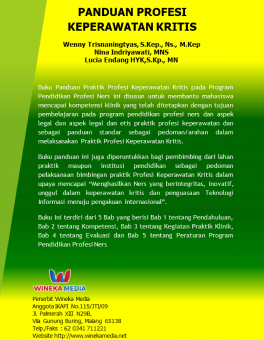 *Harga Hubungi CSNama Penulis: Wenny Trisnaningtyas, S.Kep., Ns., M.Kep., Nina Indriyawati, MNS, Lucia Endang HYK,S.Kp., MN Nama Penerbit: Wineka Media Jumlah Halaman: 101 Halaman Ukuran: 17×25 cm Harga: Rp. 69.900 ISBN (masih dalam proses), Sinopsis singkat: Buku Panduan Praktik Profesi Keperawatan Kritis pada Program Pendidikan Profesi Ners ini disusun untuk membantu mahasiswa mencapai kompetensi klinik yang telah… selengkapnya